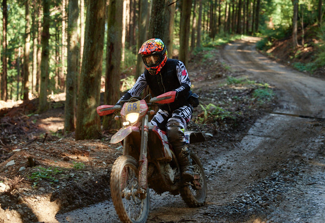 さて勝敗の行方は、初出場の#68エンデューロライダー 保坂修一と、SSERの超常連組の#3 池町佳生、#1岡本薫の展開に。#2福岡秀之は、中国製オフロードバイクを持ち込み独特の楽しみ方をしていました。さらに特筆されるのはUNDER28 CLASSに多くの参加者がいたこと、10代のエントラントの姿も、そして優勝者の保坂修一は過去最年少優勝であるということ。この古く懐かしいというSSER 2DAYSが、なにやら新しい萌芽を見せているようで、素晴らしいことです。